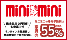ミニミニは仲介手数料が家賃の55%(税込)です。敷金・礼金0円・家具家電付物件など学生様向けに豊富な物件を取り揃えております。オンラインでのお部屋探しも対応しております。住環境や家賃相場、ひとり暮らしや住まい探しのご不安な点など、お気軽にご相談ください。