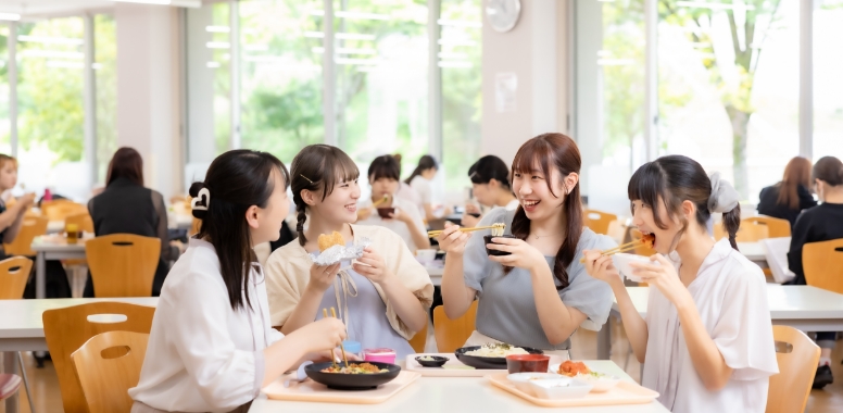 三日月型のクレセントホールの1階には約280席の食堂と、きれいで居心地の良いカフェテリアがあります。便利なコンビニ感覚の売店で販売する焼き立てパンが人気です。