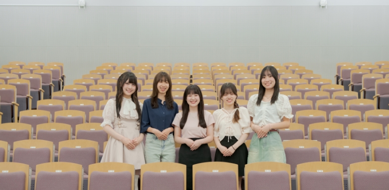 2フロア吹き抜けで300席を有する大教室には、各種AV機器を完備。迫力満点の大型スクリーンやソファ仕様の柔らかい座席が映画館のようです。