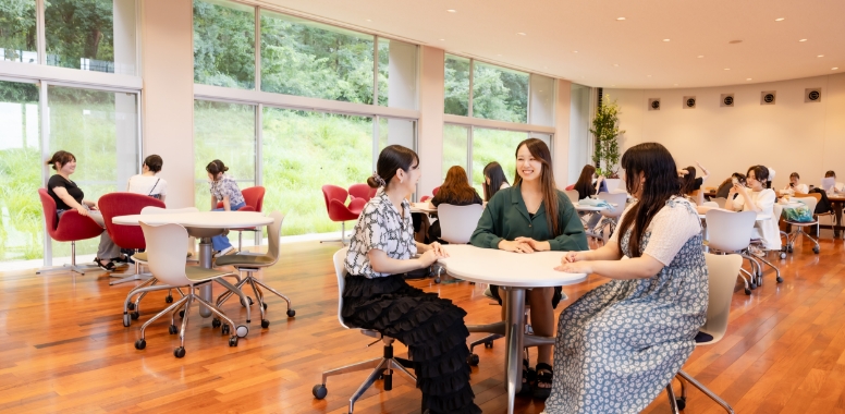 緑の丘に建つ日高キャンパスは、’99年に誕生したきれいなキャンパスです。クヌギの林や小川のせせらぎが聞こえる心地良い学習環境が自慢です。最先端の設備を整えるモダンな校舎群とともに知性や人間性を伸びやかに育み、2年間の有意義な学生生活を創ります。