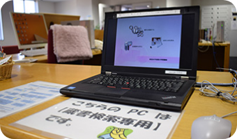 図書館の本は全て入力済。パソコンで簡単に探せます。インターネットで他の図書館の本や雑誌の記事も探せます。