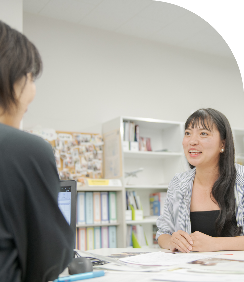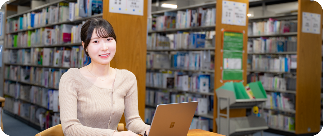 所属コースの調剤事務について学びながら、高校生の時から興味があった手話や韓国語も履修しています。少人数の授業が多く、マナー・ホスピタリティの授業で接遇や電話対応の方法を直接チェックをして下さったことが、インターンシップや面接に役に立ちました。社会人として必要な事を直接指導で学ねたことが、今では自分の強みになっています。