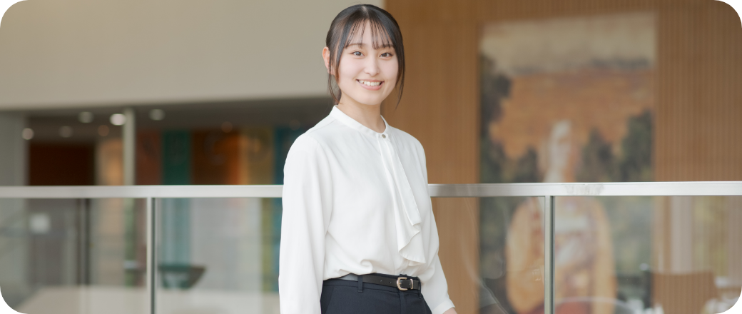 化粧品やメイクスキルといった「ビューティー」の世界に魅力を感じ、高校では学べなかったメイクや肌科学の授業を受けています。「女子短大」という温かく学びやすい環境の中で、集中して美容の勉強をすることができました。講義を通して美容の知識だけでなく、社会人として必要なマナーや心配りも身につけることができました。