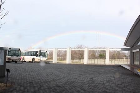 春の嵐が接近する中、空にはおおきな虹がかかり、皆さんのスタートを見守っていました。