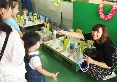たくさんの屋台やゲームコーナーがある中、SAIJO生が担当するのは縁日。輪投げにスーパーボールすくい、水風船釣り、ボール投げ、特大お絵かきの進行を務め、400人を超える子供たちを楽しませていました。