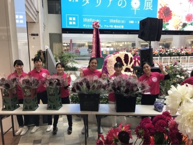 エアライン専門ゼミは、東北応援の一環として10月6~8日の3日間、池袋サンシャインシティで開催された第七回ダリアの華展に参加し、福島県塙町のダリアMARCHEを行いました。