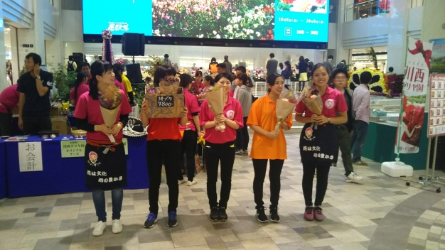 華展は、まず長蛇の列のお客様に限定プレゼントすることから幕を明けます。