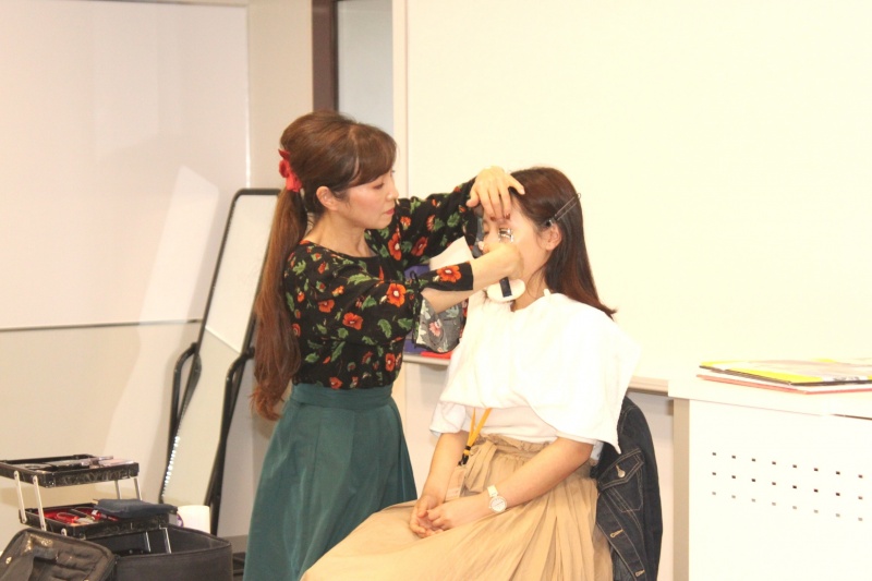 SAIJOの「ビューティーホスピタリティコース」では、幅広い職種で活かせる”質の高い”コミュニケーション能力や礼儀作法などを身につけることを目指しています。言葉遣いや所作はもちろん、第一印象に大きな影響を与える「素敵な笑顔」も習得できたら嬉しいですよね。今回は、女性には必要不可欠なメイクアップのミニ体験授業を開講!好印象を与えるメイク術をSAIJO生をモデルに実演しました。キリッとしたステキ女子へと変身できるメイクのポイントは参考になったのではないでしょうか。