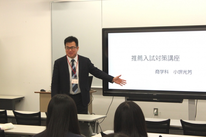 「推薦入試対策講座」は、10月7日(土)に実施された「推薦対策面接講座」と違い、試験当日の面接官でもある入試担当教員が入試のポイントを紹介しました。面接官が何をチェックしているか、どこに注意するべきかなど、面接の評価を良くするためのポイントが「推薦入試対策講座」で知ることができます。