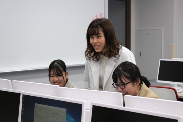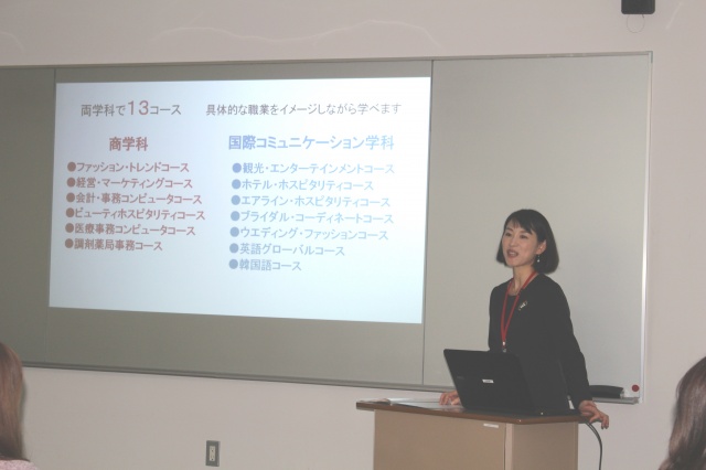 『劇場型キャンパス見学ツアー』と題し、ファッション、医療事務、ホテル、エアラインの各コースの授業で使用している教室をめぐり、それぞれの教室で在学生によるプチ授業も経験していただきました。それぞれのコースでどのようなことをしているのか、興味をもっていただけたのではないでしょうか。