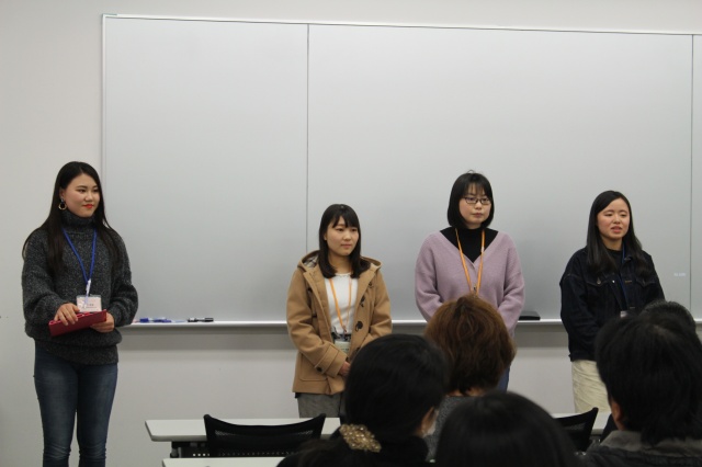 後半のスピーチでは授業やインターンシップ体験、就職活動などをインタビュー形式で紹介しました。みなさんもSAIJO生のリアルな体験談を聞いてみてください!