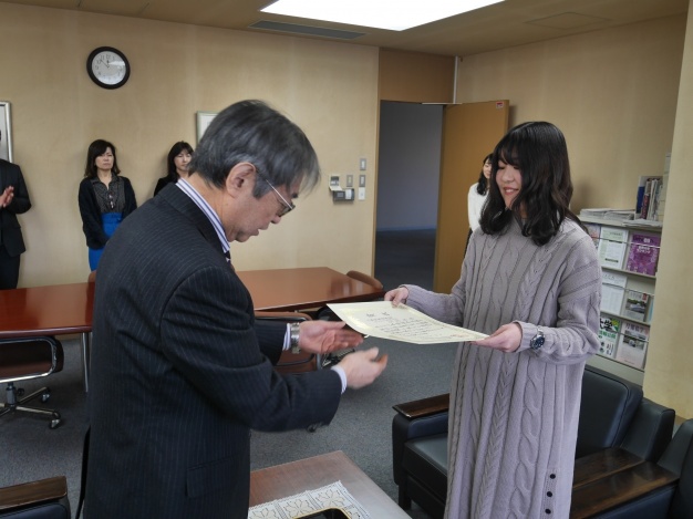 2018年11月に行われた医療秘書教育全国協議会主催「第61回医療秘書技能検定試験」および「第46回医事コンピュータ技能検定試験」の結果において、成績優秀賞を受賞された学生に、2019年1月31日(木)学長室にて桾沢学長より表彰状が授与されました。