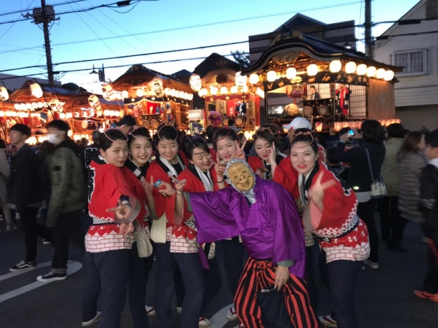 4月27日~28日の2日間、本学エアラインホスピタリティコース1,2年生の有志総勢約60人で埼玉県入間市の「おとうろうまつり」に参加し、元気と笑顔で山車の曳き廻しを行いました。