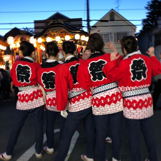 最終日は快晴の空の下、頂いた名前入りのお揃いの札を下げて半纏(はんてん)と鉢巻きと足袋に草履という粋な姿でフィナーレまで、