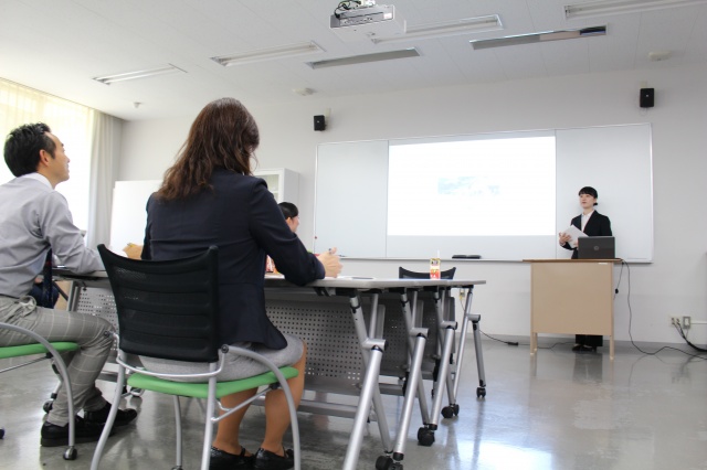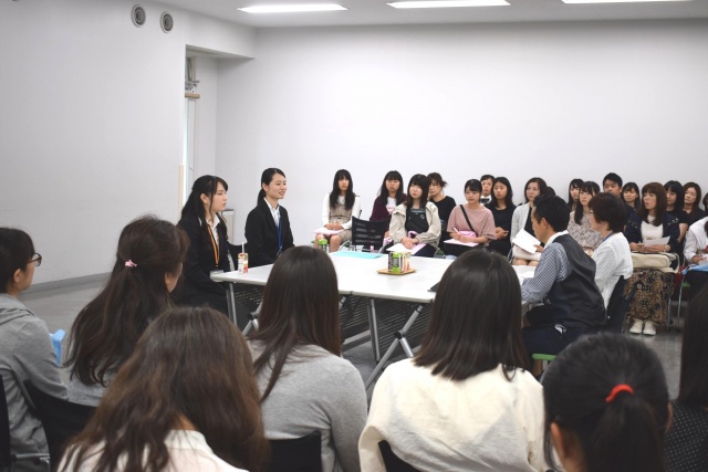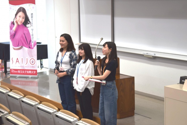 SAIJO生のスピーチでは授業やインターンシップ体験、就職活動などを紹介しました。