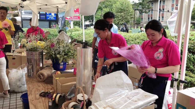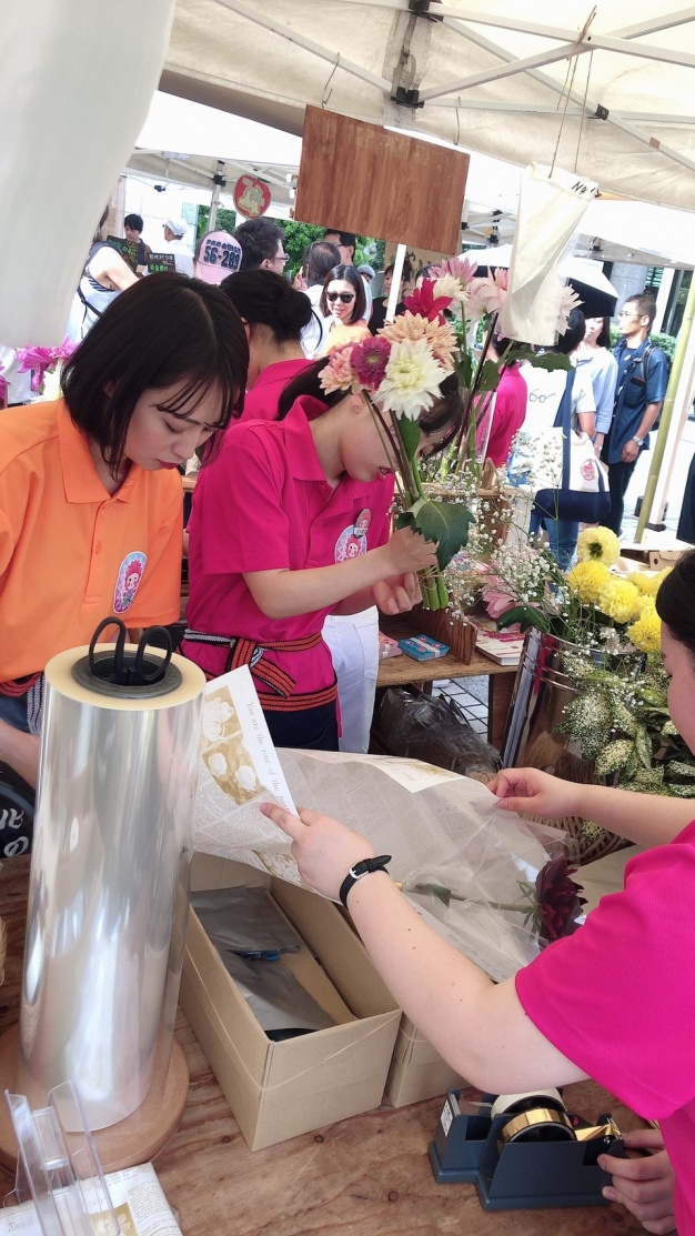 販売やラッピングを手伝ってくださった卒業生もいました。まさに花が人を集め、笑顔になるフラワージェットのコンセプト通りのMARCHEでした。