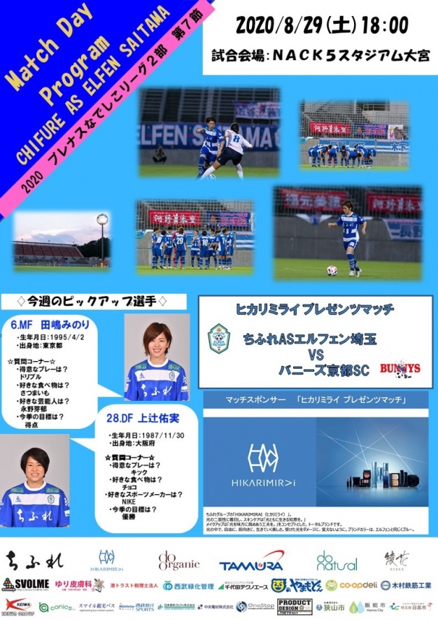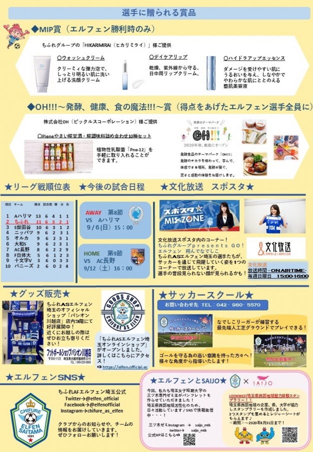 三ツ木専門ゼミナールでは日高市・飯能市・狭山市をホームタウンとして活動する女子サッカーチーム、ちふれASエルフェン埼玉様のマッチデープログラムをデザインしています!