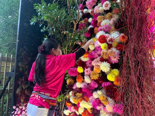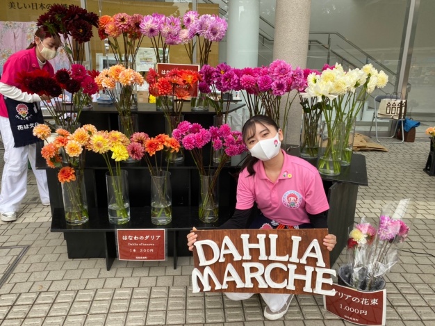 宮内に配されたダリアのオブジェと同じ鮮やかなダリアをお安く購入出来るということもあり、3日間で完売しました!