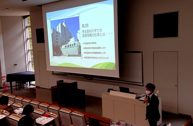 後半は、業務内容から事務員として必要なことについてお話いただきました。埼玉医科大学では現在OB18名が活躍されており、日々「笑顔・やさしさ・思いやり」を大事にしながら業務に取り組まれていることがわかりました。