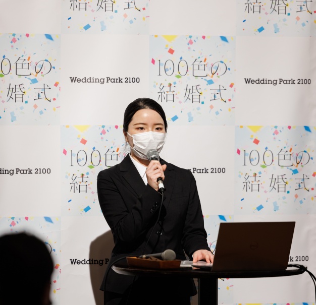 「Wedding Park 2100 ミライケッコンシキ構想」特別展の記者発表席でプレゼンテーションを行いました