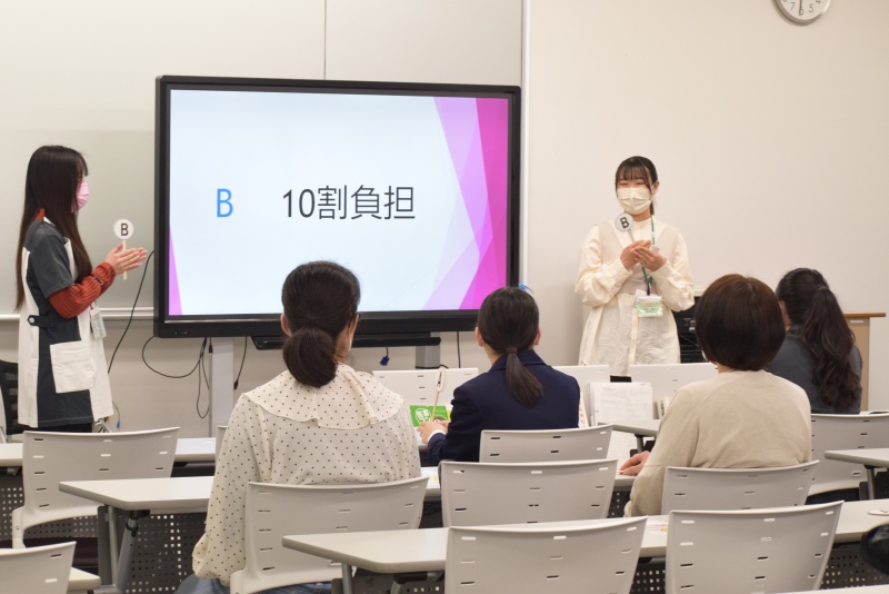 医療事務や調剤薬局事務コースに所属するSAIJO生が病院受付のロールプレイングや知っていると安心な医療関連の豆知識をクイズ形式で紹介しました。普段、授業で使うテキストや勉強方法などSAIJO生にしか伝えられないエピソードを聞くことができました。