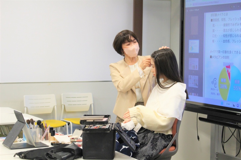 メイクは、ビューティー・ホスピタリティコースのメイク科目をご担当されている