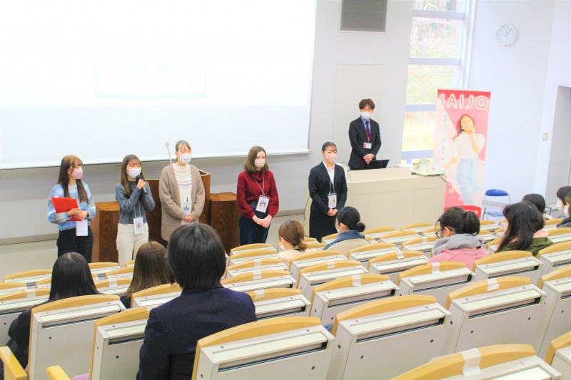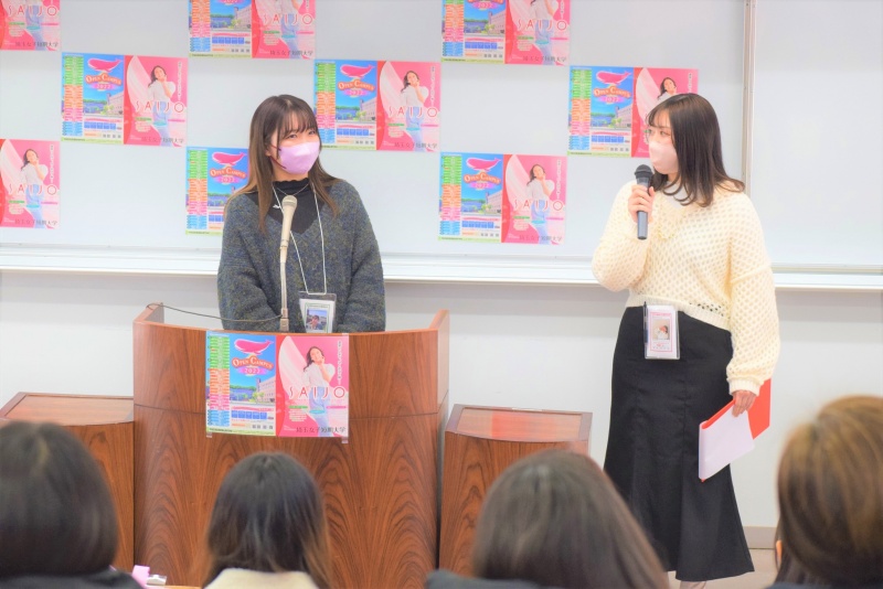 この日の全体説明会は、SAIJOで夢を叶えた仲良し3人組がSAIJO生スピーチを担当!