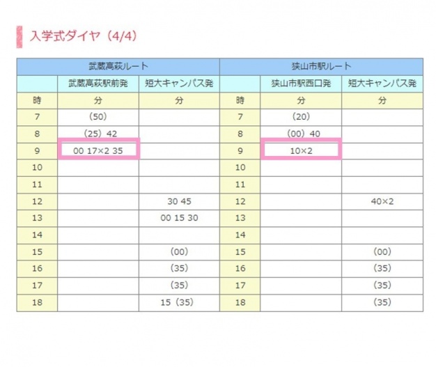 【新入生の皆さま】入学式のバスダイヤにつきまして