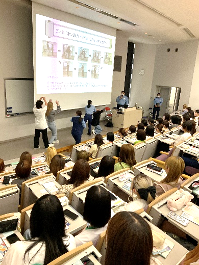 後半には「咄嗟の構え」「腕抜き」「ポン抜け」などの数々の護身術をご披露いただき、代表のSAIJO生たちが実演する場面も。壇上で護身術を体験した学生たちは咄嗟の行動の難しさを痛感したようで、「普段から対策を考えていなければいけないのだとわかりました!」と、実感を込めた感想を聞かせてくれました。