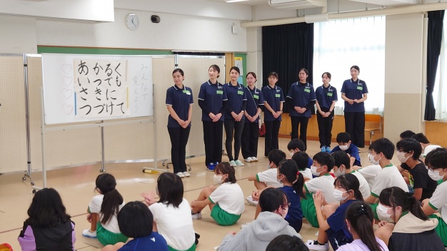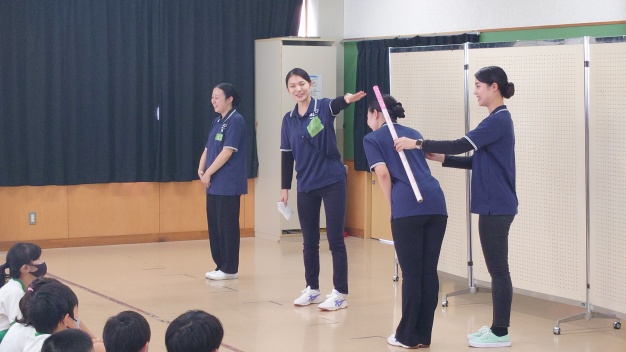 児童の皆さんは少し緊張している様子でしたが、寸劇を演じると、日常目にする色々な場面を通し、笑いあり、質問へも手を挙げて答えてくれるなど、次第に先生役の学生との距離も縮まっていきました。