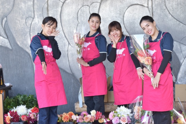 前日まで学生たちは、本学の大学祭(彩女祭)で連携先である福島県塙町のダリアや特産品、地元のお野菜を販売したり、専門ゼミの中間発表を行ったり、キャンドルナイト企画の開催など、活発に取り組んでいました。