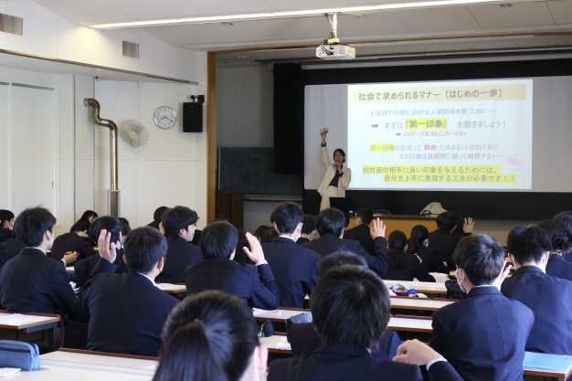 2024年1月25日(木)「SAIJOマナホス研究所」の相原あすか研究員が、埼玉県立鶴ヶ島清風高校でマナー講座を実施しました。