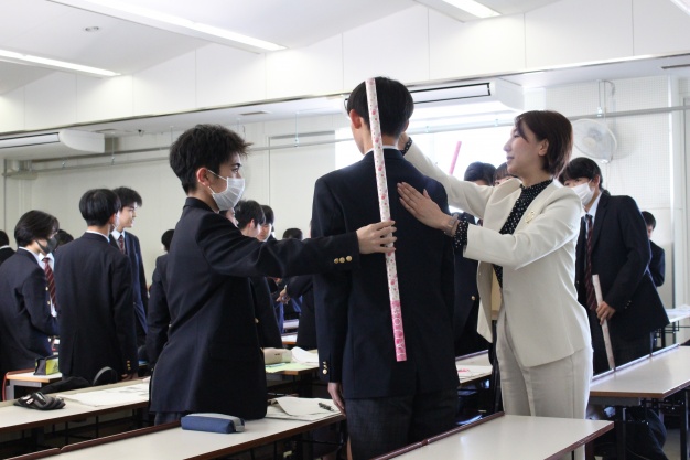 職場見学に参加される2年生の皆さんを対象に、「マナー・ホスピタリティ」について、社会に出てからも大切な「挨拶」と「立ち居振る舞い」について学び、最後に実習を行いました。