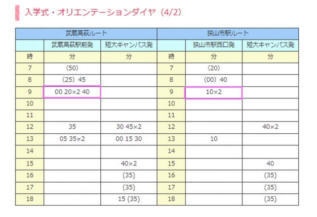 【新入生の皆様】入学式のバスダイヤにつきまして