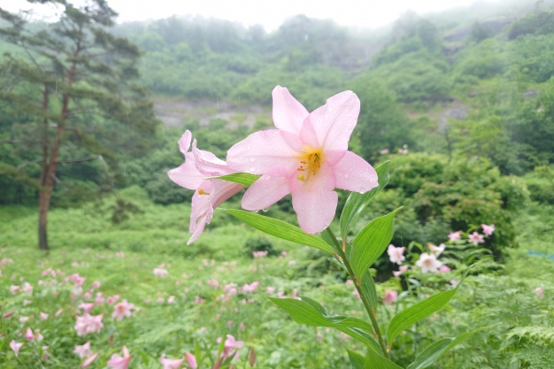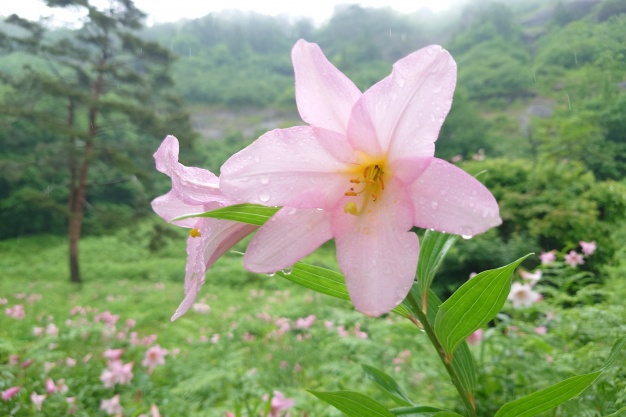 今年は低気圧の影響で、お祭りにとってはあいにくの雨模様。ですが、おとめゆりや新緑にとっては、恵みの雨となりました。