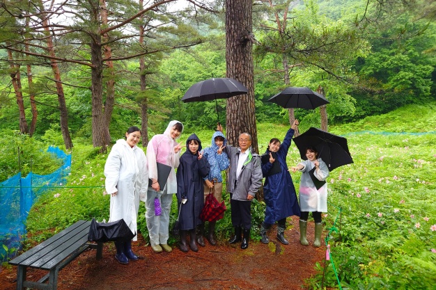 ゼミ生は、長い階段を登った先にある群生地にたどり着いたお客様と、おとめゆりの話をしながら、この花を守るためのヒントを見出すためのヒアリング調査をしました。