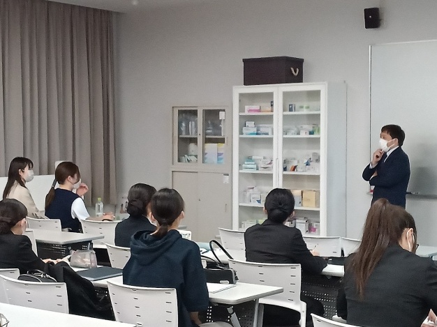 また、稲垣薬局様に就職した卒業生から現在の仕事の様子を伺うことができ、学生にとっては大変励みになったようです。卒業した先輩は今年で13年目とのことで、先輩の笑顔は学生にとって心強い味方に感じられました。