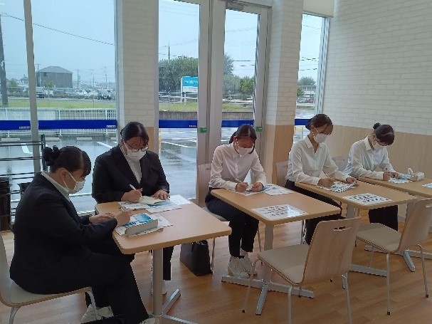 実際の調剤する姿を見たり、取り扱う医薬品の多さに圧倒されたり、また、調剤室は意外と大きな音がしていると知り、机上の学びからは得られない貴重な体験ができたと感動した学生もいました。また、勤続1年目と2年目の医療事務員のお二人から教育・指導内容を教えていただき、お互いの信頼関係の強さにフォローアップ制度が充実していると感じました。学生は、事前に調べて抱いた疑問や、説明をしていただいて感じた疑問について熱心に質問していました。