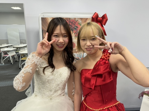 ウェディングドレスと赤いカラードレスを着たSAIJO生が、クリスマス仕様にとても素敵にスタイリングされていました💗