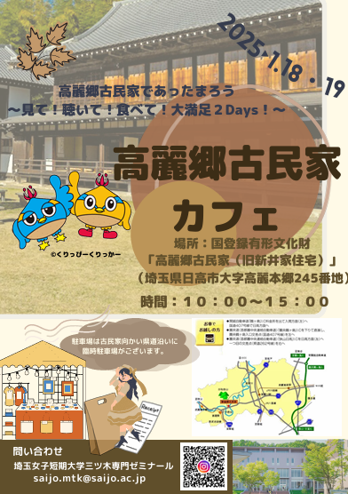 三ツ木専門ゼミプロデュース!! 1/18・19「高麗郷古民家カフェ」開催のお知らせ