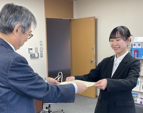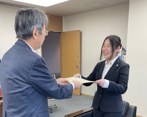 2024年11月に行われた医療秘書教育全国協議会主催「第58回医事コンピュータ技能検定試験3級」の結果において、「成績優秀賞」を受賞された学生に、2025年1月22日(水)学長室にて桾沢学長より表彰状が授与されました。