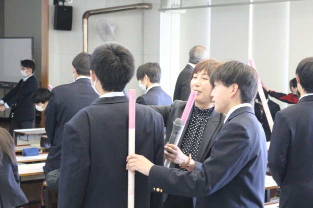 最初はやや緊張した雰囲気でしたが、いざ講義が始まるとメモを取るなどしてしっかりと話を聞いてくれました。出張授業を進める中で、皆さんの持つエネルギーや素直さが伝わり、とても楽しく指導することができました。