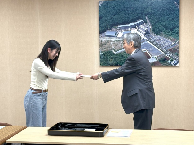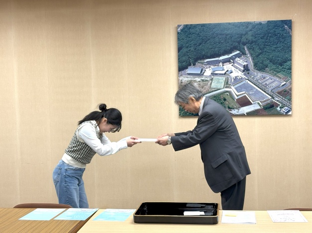新年度を迎えた本日、桾沢学長より受賞者に表彰状と副賞が贈られました。2年生になったその姿は一層頼もしく見え、キラキラとした笑顔が印象的でした。