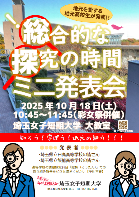 高校生の皆さん大集結!「総合的な探究の時間」ミニ発表会を開催します!!!/トピックス|埼玉女子短期大学[SAIJO]