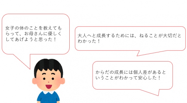 また、思春期特有の心の変化についても気づきを引き出すために、児童の皆さんに積極的な発言をしてもらいました。