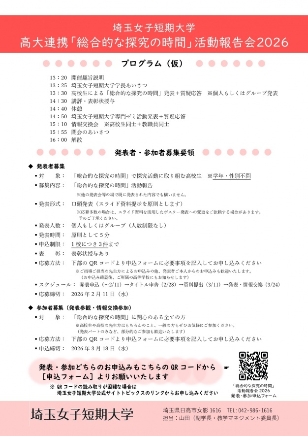 3/24「総合的な探究の時間」活動報告会を開催します!!!/トピックス|埼玉女子短期大学[SAIJO]